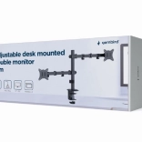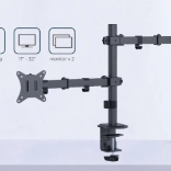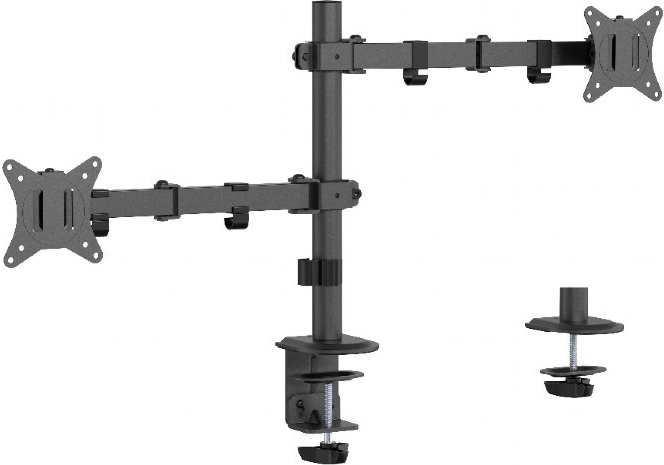 Tento dvojitý držiak monitoru je ideálny pre každú pracovnú plochu. Umožňuje jednoduché polohovanie obrazoviek medzi 17" a 32", s maximálnou hmotnosťou 9 kg na monitor. Konštrukcia držiaku zabezpečuje, že vaše obrazovky budú stabilné a bezpečne uchytené. Je kompatibilný s VESA štandardom (100 x 100 mm a 75 x 75 mm), čo zaručuje širokú kompatibilitu s rôznymi monitormi.