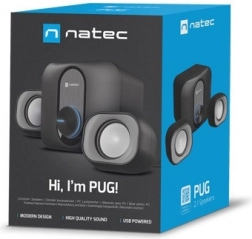 Reproduktory Natec PUG nevyžadujú žiadne ovládače alebo napájače a začnú fungovať hneď po pripojení k USB a 3,5 mm jacku. Ovládanie hlasitosti je ľahko dostupné vďaka ovládaču na subwoofera, doplnenému osvetlením pre lepšiu viditeľnosť aj v noci.