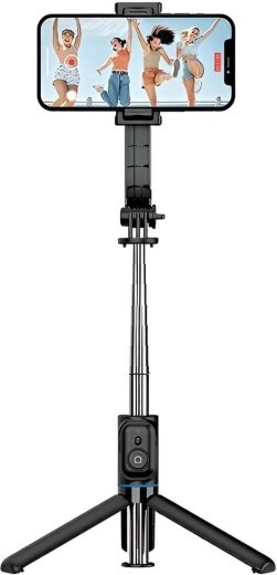 Selfie stick tripod X49 kombinuje estetiku a funkčnosť: odolná konštrukcia so stabilným trojnožkovým podstavcom a hlavou s možnosťou presného nastavenia vertikálne aj horizontálne zaistí ostré zábery bez chvenia. Odnímateľný Bluetooth diaľkový ovládač umožní snímať fotky aj videá na diaľku – ideálne na sólo cesty aj skupinové fotky bez časovača.