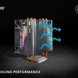 Štyri medené heatpipe trubice zabezpečujú efektívny odvod tepla z povrchu procesora, čo zaručuje stabilnú prevádzku systému.
