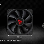 120mm ventilátor s rýchlosťou otáčok 800–1800 RPM zabezpečuje optimálny prúd vzduchu pri nízkej hlučnosti, čo prispieva k účinnejšiemu chladeniu.