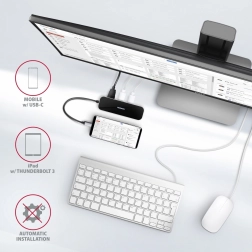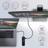Dedicated USB-C konektor umožňuje napájanie notebooku alebo smartphonu s technológiou Power Delivery 3.0 až do 60W. Pripojte nabíjačku USB-C Power Delivery k hubu a ušetríte jedno zariadenie. Podmienkou je však kompatibilný laptop a nabíjačka s podporou Power Delivery.