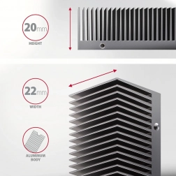 Udržte svoje M.2 SSD v optimálnej teplote a bez straty výkonu. Hliníkový chladič s priečnym rebrovaním a kovovým rámom zvyšuje plochu pre odvod tepla a vďaka teplovodivým podložkám účinne chladí jednostranné aj obojstranné disky. Kompaktná konštrukcia s celkovou výškou 24 mm umožňuje inštaláciu aj do stiesnených priestorov, napríklad do skríň s obmedzenou výškou nad slotom.