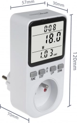 Tento merač je vybavený štyrmi veľkými tlačidlami pre jednoduchú obsluhu a alarmom preťaženia, ktorý vás varuje, keď záťaž presiahne bezpečný limit 3680W. Jasný displej umožňuje jednoduché čítanie dát ako je množstvo spotrebovanej energie a jej náklady, čo pomáha efektívnemu monitoringu a kontrole vašich výdajov na elektrinu.