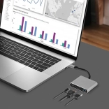 Všestranné využitie: Tracer A-1 je multifunkčný adaptér, ktorý zlepší konektivitu vášho počítača alebo notebooku. Je vybavený konektorom USB-C a tromi portmi, ktoré vám umožnia súčasne pripojiť a ovládať ďalšie kompatibilné zariadenia. Port USB 3.0 umožňuje využívať pohodlné periférne zariadenia, napr. externú klávesnicu alebo myš, a poskytuje rýchly prenos dát až 5 Gbps. Pomocou portu HDMI 1.4 pripojíte ďalší monitor alebo projektor, čo vám umožní pracovať pohodlnejšie na väčšej obrazovke. Tento štandard podporuje kvalitu 4K, čo znamená, že sledovanie filmov alebo trávenie času pri obľúbenej hre bude ešte príjemnejšie. Tretí port zabezpečuje rýchle nabíjanie nových iPhonov, iPadov, MacBookov a ďalších kompatibilných zariadení napájaných cez USB-C.