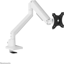 Držiak NEOMOUNTS DS70-250WH1 NEXT Slim v elegantnom bielom prevedení je ideálny pre ploché aj zakrivené monitory. Vďaka plynulej regulácii výšky v rozsahu 21,5–49,5 cm a hĺbky 7–52,5 cm ľahko nastavíte monitor do dokonale ergonomickej polohy pre prácu aj zábavu. Plná flexibilita – náklon až 90°, otočenie 360° a natočenie 180° – zaručí optimálny uhol pohľadu v každej situácii.