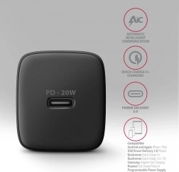 Univerzálna USB‑C nabíjačka s výkonom 20 W je ideálna pre moderné smartfóny a tablety. Vďaka protokolom Power Delivery 3.0, Quick Charge 4+, PPS, AFC a FCP zaistí maximálnu možnú rýchlosť nabíjania v širokej škále zariadení vrátane Apple iPhone 12–15, iPad, Samsung či Huawei.