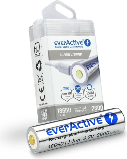Univerzálny akumulátor 18650 s kapacitou 2600 mAh a napätím 3,7 V ponúka pohodlné nabíjanie cez integrovaný micro USB port, spoľahlivú Li‑ion technológiu a zabudovanú ochranu PCM proti prebitiu, hlbokému vybitiu a skratu. Ideálna voľba pre výkonné svietidlá aj ďalšie zariadenia s vymeniteľným článkom 18650.