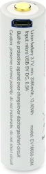 Ideálna pre použitie v svetlometech a ďalších zariadeniach využívajúcich výmenný akumulátor 18650. S vysokým výkonom dokáže napájať aj veľmi náročné zariadenia. Vďaka malým rozmerom a možnosti nabíjania cez micro USB je to jedna z najlepších batérií na trhu.