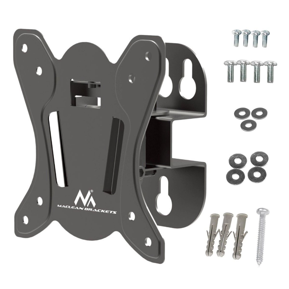 Univerzálny nástenný držiak slúži na montáž televízorov LCD, LED, OLED a monitorov rôznych značiek s hmotnosťou do 30 kg a uhlopriečkou obrazovky 13 až 32. Nastavenie sklonu umožňuje optimálnu polohu obrazovky, čo zaručuje najlepší pozorovací uhol. Držiak je kompatibilný s televízormi a monitormi LED, LCD a OLED: Sony, LG, Samsung, Philips, Sharp, Panasonic, Toshiba, Grundig, Pioneer, JVC, BenQ, Sanyo, NEC, Hyundai, Hitachi. Uvedená veľkosť obrazovky je len orientačná. Na držiak je možné pripevniť aj väčší televízor, pokiaľ neprekročí maximálnu hmotnosť a spĺňa uvedený štandard VESA.