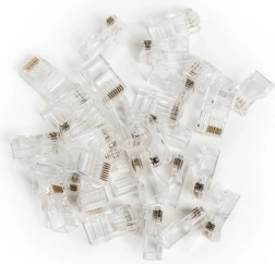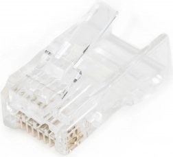 Priebežné RJ45 (8P8C) konektory kat. 6 ponúkajú spoľahlivé ukončenie sieťových káblov s nízkou prechodovou impedanciou a čistým kontaktom, čo vedie k vysokej priepustnosti a nižšej chybovosti prenosu. Transparentné telo uľahčuje kontrolu poradia žíl pred zalisovaním a skracuje čas inštalácie.