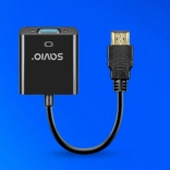Kompaktný adaptér HDMI–VGA Savio AK-75 prevádza digitálny signál HDMI na analógové VGA s plynulou, bezproblémovou konverziou a vysokým rozlíšením. Umožní ľahko pripojiť notebook, hernú konzolu či Blu-ray prehrávač k staršiemu monitoru alebo projektoru s VGA. Ponúka jednoduchú inštaláciu bez ovládačov, čistý a ostrý obraz a ľahkú, prenosnú konštrukciu vhodnú domov aj do kancelárie.