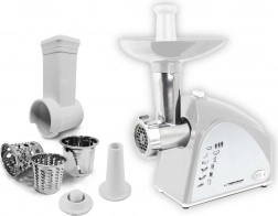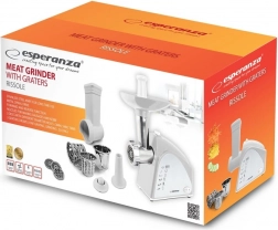 Multifunkčný elektrický mlynček na mäso so strúhadlom Esperanza RISSOLE je spoľahlivý pomocník do každej kuchyne. Ľahko pomelie mäso aj ďalšie suroviny a so sadou nadstavcov pripraví aj domáce klobásy alebo kebbe. Strúhadlový nadstavec zvládne ovocie, zeleninu, tvrdý syr, čokoládu aj orechy. Stabilnú prevádzku zabezpečujú protišmykové nožičky.