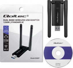 Bezdrôtový USB Wi-Fi adaptér Qoltec bol navrhnutý pre zariadenia bez zabudovanej sieťovej karty alebo používajúce staršie verzie. Ponúka: - Podporu štandardov a/b/g/n/ac pre špičkový výkon, - USB 3.0 konektor spätne kompatibilný s USB 2.0, - Dve frekvencie 2,4 a 5,8 GHz pre streamovanie videí v 4K či hranie hier, - Prenos dát rýchlosťou až 1200Mbps, - Zabudovanú dvojitú anténu 2 x 2dBi, - Kompaktné rozmery.