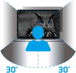 Natec Owl filter sa skladá z 10 vrstiev s technológiou mikro-žalúzií, ktoré zabraňujú zobrazeniu obsahu z bočných uhlov. Pri pohľade z uhla 30 stupňov obraz úplne zčerná.