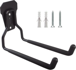 Montáž je jednoduchá a v balení je všetko potrebné montážne príslušenstvo. Držiak je ideálny pre zavesenie pneumatík, bicyklov, rebríkov alebo záhradného náradia, čím prispieva k efektívnemu využitiu priestoru.