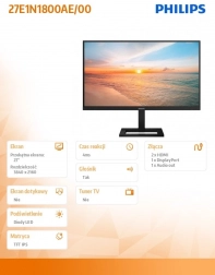 Philips 27" IPS 4K monitor je ideálnou voľbou na prácu s grafikou, tabuľkami aj na zábavu. Rozlíšenie 3840 × 2160 prináša jemný obraz plný detailov, IPS technológia zabezpečuje verné farby a široké pozorovacie uhly. Integrované reproduktory šetria miesto na stole a ponúkajú pohodlné počúvanie.