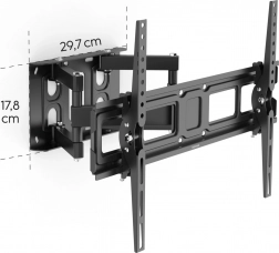 Držiak podporuje štandard VESA až do 600 x 400 mm, vďaka čomu je kompatibilný s rôznymi veľkosťami a typmi televízorov.