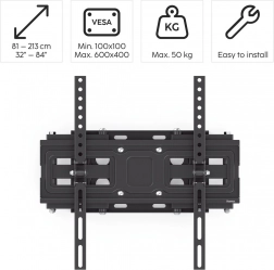 S maximálnou nosnosťou 50 kg a robustnou konštrukciou z ocele poskytuje tento držiak bezpečné uchytenie pre váš televízor.