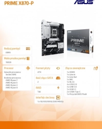 Doska je navrhnutá pre moderné pracovné aj herné použitie, vrátane úloh s umelou inteligenciou. Podpora rýchlych modulov DDR5, viacerých slotov M.2 pre NVMe SSD a bohatá konektivita s USB‑C, HDMI a LAN robia z PRIME X870-P všestrannú voľbu pre PC DIY nadšencov aj profesionálov.