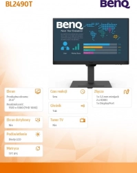 BenQ BL2490T je 24-palcový monitor postavený na technológii IPS, ktorá zabezpečuje verné podanie farieb a stabilný obraz z akéhokoľvek uhla. Vďaka odozve 4 ms si poradí s dynamickým obsahom a kontrastný pomer 1300:1 dodá obrazu hĺbku a čitateľnosť. Pripojenie cez HDMI zaručí jednoduché zapojenie k notebooku, PC či dokovacej stanici.