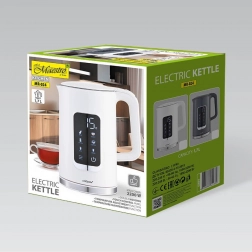 Elektrická kanvica Maestro je vybavená dotykovým panelom pre presnú kontrolu teploty. Môžete si vybrať z prednastavených programov: 40°C pre mlieko, 70°C pre med, 80°C pre zelený čaj, 90°C pre kávu a 100°C pre varenie vody. Nastaviteľný teplotný rozsah je od 40°C do 100°C.