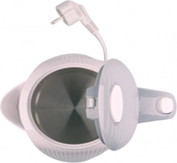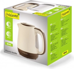 Elektrická kanvica Maestro je vybavená otáčacou základňou o 360°, čo vám umožňuje jej umiestnenie kdekoľvek, bez ohľadu na polohu rukoväte. Skrytý ohrevný element uľahčuje údržbu kanvice, zatiaľ čo praktické otváranie veka jediným tlačidlom na rukoväti zvyšuje užívateľský komfort. Pre usporiadaný pracovný priestor slúži úložný priestor na kábel 70 cm. Automatické vypnutie pri nedostatku vody chráni pred prehriatím a zaručuje bezpečnosť. Vďaka rozmerom 22 x 21 x 15 cm je kanvica kompaktná a vhodná pre každodenné použitie.