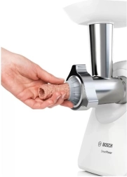 Hľadáte spoľahlivý mlynček, ktorý zvládne jemné aj hrubšie mletie behom chvíľky? BOSCH MFW2520W SmartPower prináša vysoký výkon a rovnomerné výsledky pre burgery, fašírku, karbonátky aj domáce klobásy. Vďaka kompaktnému prevedeniu sa ľahko zmestí na kuchynskú linku aj do skrinky.