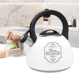 Tradičná kanvica Paris Maison je vyrobená z odolnej nehrdzavejúcej ocele a plastu, čo zaisťuje nielen estetiku, ale aj odolnosť voči poškodeniu. Je vybavená praktickou píšťalkou signalizujúcou var vody, čo je užitočná funkcia na každodenné použitie. Odnímateľné veko uľahčuje nalievanie vody a čistenie kanvice, čo robí jej používanie rýchlym a pohodlným.