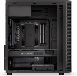 Skriňa je vybavená tromi 120 mm ventilátormi, vrátane predinštalovaného modelu Stratus 120 PWM, známeho z väčších skríň ENDORFY pre jeho vysoký prietok vzduchu a kultúru práce. Ventilátor funguje na pevnom FDB ložisku a umožňuje PWM riadenie otáčok.