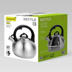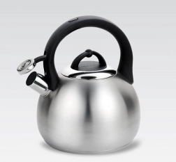 Čajník Maestro 3l kombinuje funkčnosť s moderným dizajnom a je perfektným doplnkom do každej kuchyne. Disponuje neohrejúcou sa rukoväťou pre pohodlné a bezpečné nalievanie vriacej vody. Inteligentná píšťalka vás upozorní na dosiahnutie bodu varu, a vďaka odnímateľnému veku je plnenie a čistenie jednoduché.