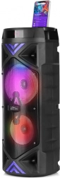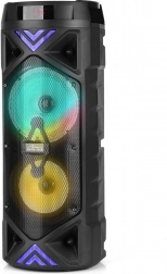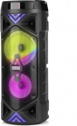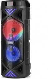 Milovníci karaoke ocenia vstup pre mikrofón 6,3 mm s nastavením hlasitosti a efektom ECHO. Pomocou diaľkového ovládania máte všetky funkcie pod kontrolou bez potreby chodiť k reproduktoru. Farebné LED efekty dodajú každej párty tú správnu atmosféru.