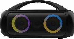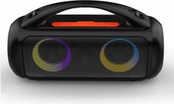 Prepracovaná akustika s 2× 3" meničmi a 2× pasívnymi žiaričmi prináša hutné basy a čisté výšky v rozsahu 100–20 000 Hz. Kompaktné rozmery, integrované madlo a popruh cez rameno uľahčia prenášanie. LED RGB kruhové efekty podčiarknu atmosféru každej párty.