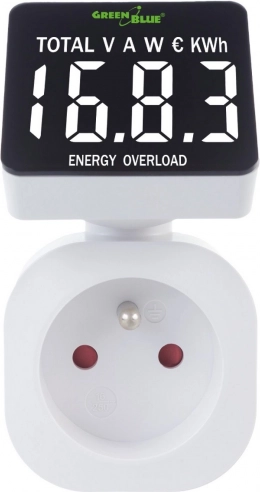 Merač energie GREENBLUE GB620E je šikovný pomocník pre domáce úspory. Stačí ho zapojiť medzi zásuvku a spotrebič a hneď uvidíte, koľko elektriny zariadenie skutočne odoberá. Vďaka prehľadnému, otočnému displeju ľahko skontrolujete napätie, prúd, výkon vo wattoch aj celkovú spotrebu v kWh, vrátane odhadu ceny. To vám umožní upraviť návyky a znížiť zbytočnú spotrebu.