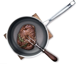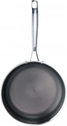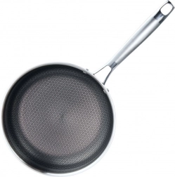 Robustná nerezová panvica s priemerom 28 cm s trojvrstvovou konštrukciou (nerez 430 / hliník / nerez 304), rýchlym a rovnomerným rozvodom tepla a odolným nepoškriabateľným povrchom s hexagonálnym „medovým plástom“. Vhodná na všetky typy sporákov vrátane indukcie, do rúry až do 260 °C a do umývačky.