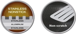 Kombinácia nehrdzavejúcej ocele 430, hliníkového jadra a potravinárskej nehrdzavejúcej ocele 304 rozvádza teplo rýchlo a rovnomerne od dna až po okraje.