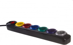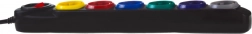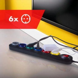 Každá zo šiestich zásuviek má inú farbu pre jednoduchú identifikáciu pripojených zariadení – poriadok v kábloch aj pri plnom vyťažení.