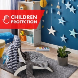 Štyri farebné zásuvky s detskou poistkou zabezpečujú bezpečnosť pre domácnosť s deťmi a ľahké rozlíšenie jednotlivých spotrebičov.