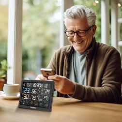 Sofistikovaný dizajn je doplnený LCD displejom a externým senzorom, umožňujúcim meranie až na 60 metrov. Táto meteorologická stanica je perfektná pre domácnosti, ktoré chcú mať prehľad o všetkých dôležitých poveternostných podmienkach a kvalite vzduchu.