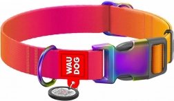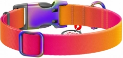 Moderný a farebný vzor s prechodom z červenej do oranžovej, vďaka čomu je obojok nielen funkčný, ale aj módny.