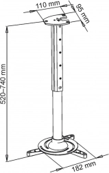 Univerzálny stropný držiak pre projektory s nosnosťou do 15 kg. Ponúka plnú reguláciu vrátane naklopenia +15° až -15° a otáčanie o 360°. Obsahuje nastaviteľnú rozteč montážnych otvorov a systém pre schovanie káblov.