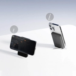Vďaka funkcii Pass-Through môže powerbanka fungovať zároveň ako stolná nabíjačka – pri pripojení k napájaniu dobíja seba aj zariadenie súčasne. Kompaktné telo so skladacím stojanom umožní pohodlné sledovanie videí či videohovory bez držania v ruke. LED indikátor štyrmi diódami prehľadne ukazuje stav nabitia.
