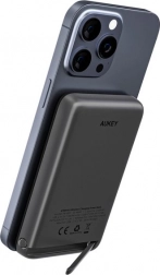 Kompaktná powerbanka AUKEY s kapacitou 6700 mAh podporuje MagSafe bezdrôtové nabíjanie pre iPhone 12 a novšie, rýchle nabíjanie až 20 W cez USB‑C, súčasné nabíjanie dvoch zariadení, praktický LED indikátor stavu a integrovaný výklopný stojan pre pohodlné sledovanie obsahu.