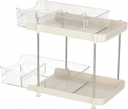 Tento dvojúrovňový akrylový organizér prináša maximálny poriadok do každodenného života. Priehľadné vaničky zjednodušia orientáciu v uložených veciach a výsuvná konštrukcia zaistí okamžitý prístup ku všetkému, čo potrebujete.
