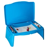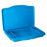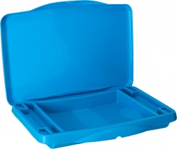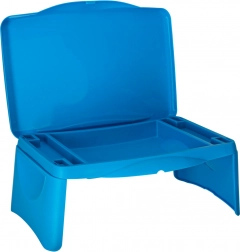 Integrovaná schovka na potreby udržiava poriadok – pastelky, papiere či malé knižky majú svoje miesto a nič sa nepovaľuje po aute. Po použití stolík ľahko zložíte do kompaktných rozmerov, takže sa skvele prenáša aj skladuje.