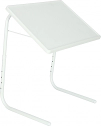 Užite si pohodlnú prácu aj zábavu na gauči, v kresle alebo pri posteli. Multifunkčný biely stolík k notebooku kombinuje stabilnú kovovú konštrukciu s praktickou plastovou doskou a vďaka nastaveniu výšky aj sklonu sa ľahko prispôsobí vašej pozícii. Zvýšená lišta na spodnej hrane dosky chráni notebook pred skĺznutím aj pri väčšom náklone.