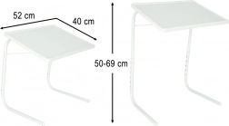Stolík sa počas pár sekúnd zloží a uskladní pod posteľ, do skrine či do rohu miestnosti. Priestranná pracovná plocha 52 × 40 cm poskytne miesto pre notebook, knihu aj dokumenty, takže je ideálny pre home office, čítanie aj servírovanie.