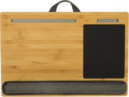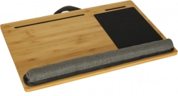 Štýlový a praktický stolík na lono z prírodného dreva pre pohodlnú prácu doma aj na cestách. Vďaka mäkkej spodnej podložke, integrovanej opierke zápästí a vyhradenej ploche pre myš ponúka ergonomické a stabilné zázemie pre notebook, písanie aj čítanie. Využijete ho v posteli, na gauči aj na terase – vždy s maximálnym komfortom a mobilitou.