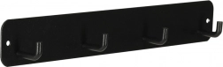 Štyri rovnomerne rozmiestnené háčiky udržia uteráky, župany aj tašky a šetria miesto na stene.