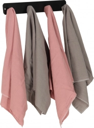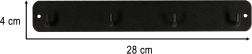 Praktický nástenný vešiak v čiernej farbe ponúka štyri pevné háčiky na každodenné použitie v kúpeľni, predsieni alebo kuchyni. Kovové prevedenie je odolné voči vlhkosti a dlhodobo si drží svoj vzhľad. Minimalistická lišta šetrí miesto a pritom poskytuje spoľahlivý priestor na odkladanie.